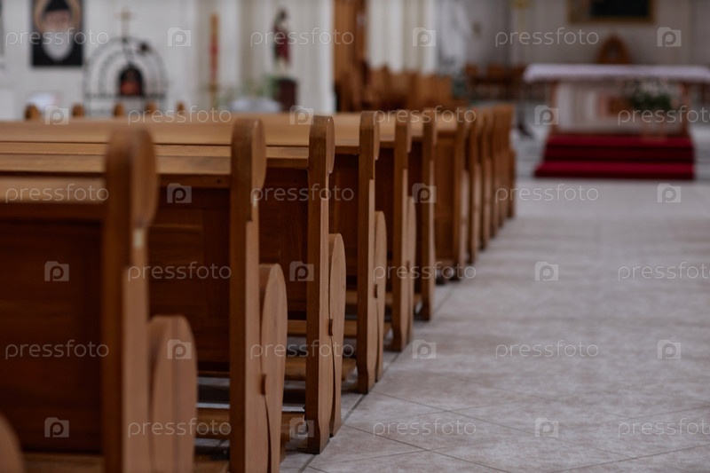 Древние деревянные скамейки в церкви
