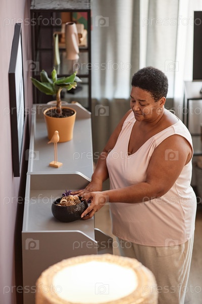 Старшая черная женщина пылистые полки