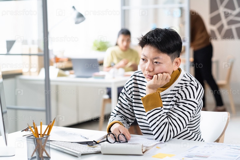 Скучная деловая женщина, сидящая на своем рабочем месте