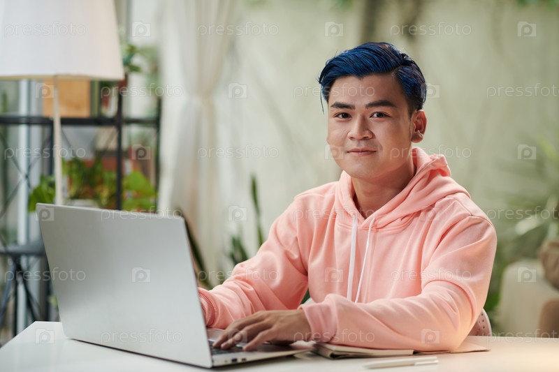 Молодой человек программирует на ноутбуке