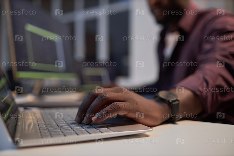 Программист работает на ноутбуке в офисе