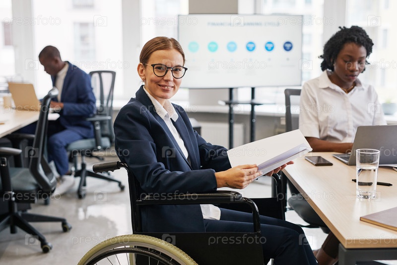 Портрет успешной деловой женщины, использующей инвалидное кресло