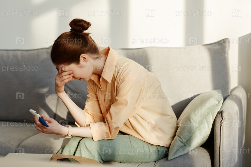 Депрессивная молодая женщина проводит тест на беременность
