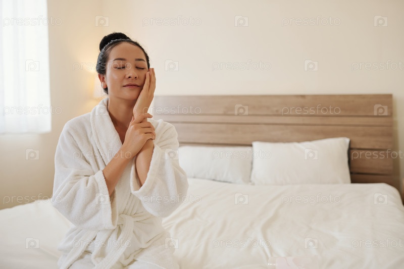 Женщина, касающаяся ее мягкой нежной кожи
