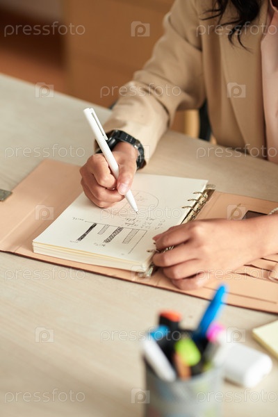Женщина, составляющая бизнес-стратегию в блокноте
