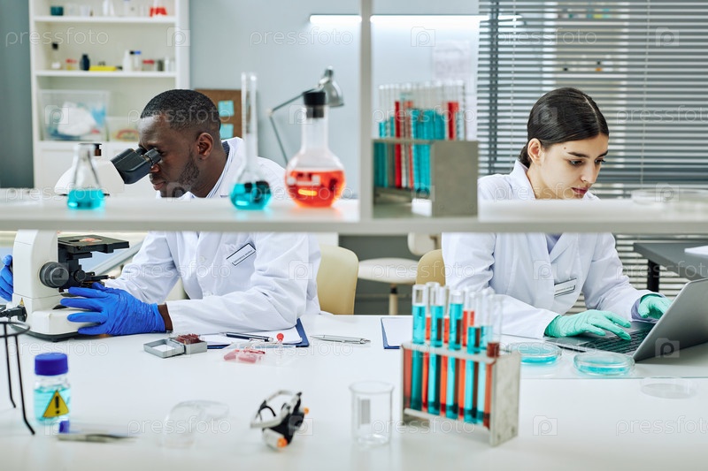 Два этнических ученых работают в лаборатории и проводят исследования