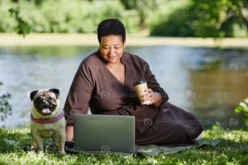 Женщина с собакой у озера