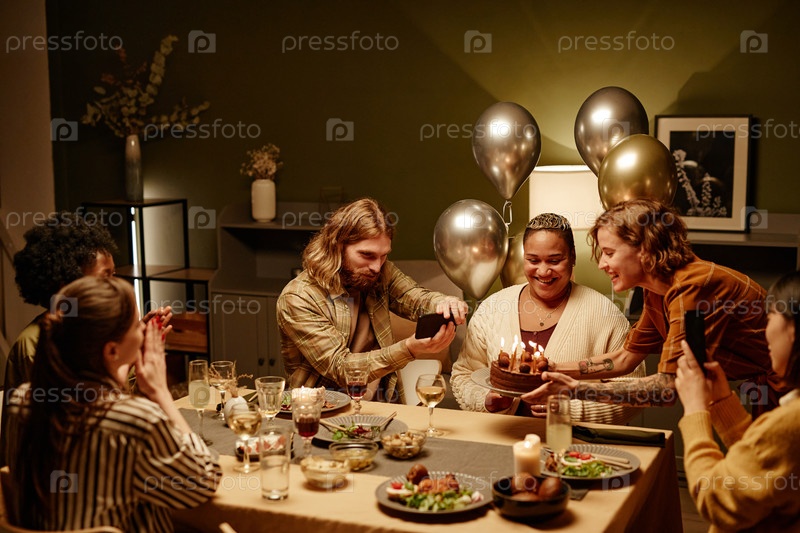 Счастливых друзей, празднующих день рождения дома