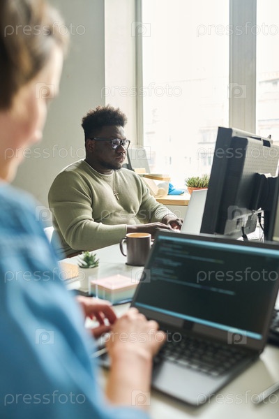 Африканский мужчина работает на компьютере в офисе