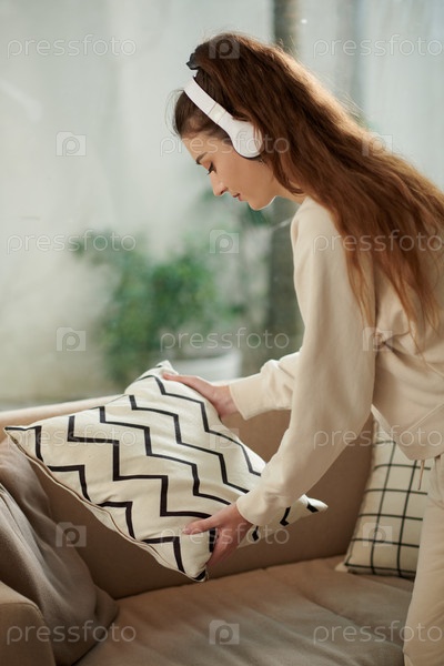 Девушка, украшающая диван