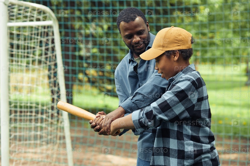 Отец учит сына играть в бейсбол