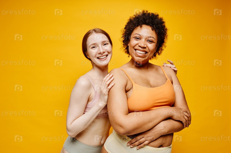 Две улыбающиеся женщины на желтом
