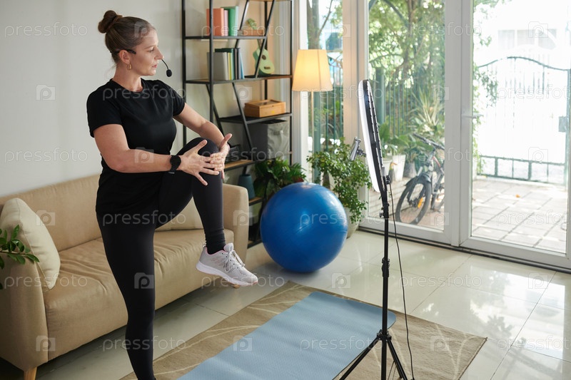 Спортсменка, записывающая себя на тренировке