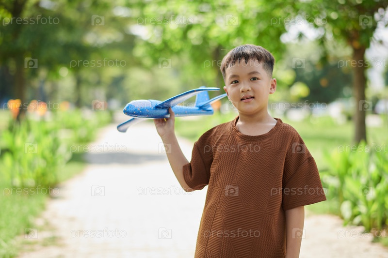 Играя с мальчиком-игрушечным самолетом