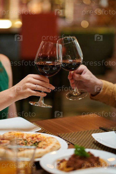 Пара тостирует со стаканами вина