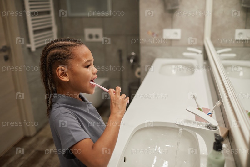 Маленькая девочка, чистившая зубы сбоку