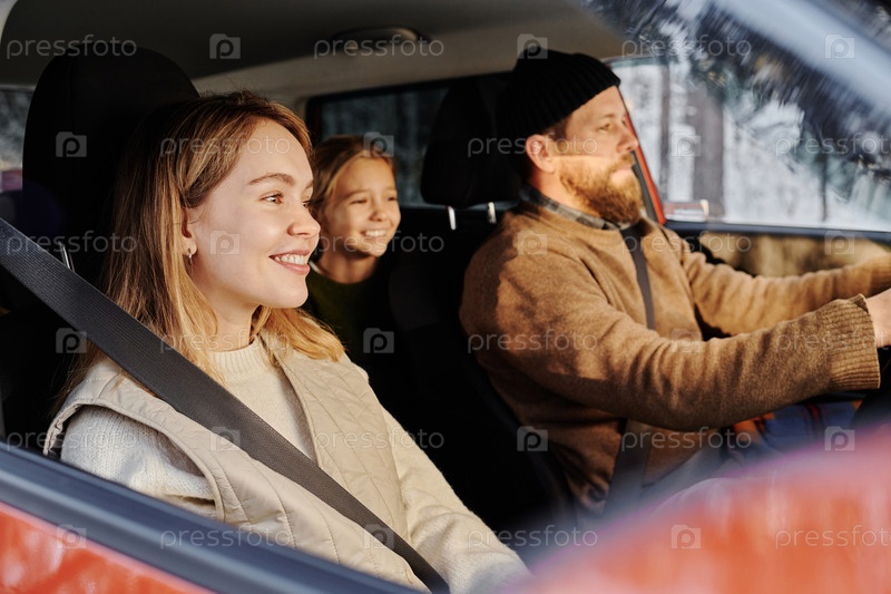 Семья из трех человек, путешествующая на машине