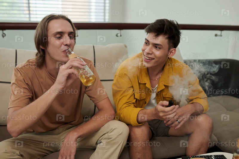 Молодые люди, расслабляющиеся дома