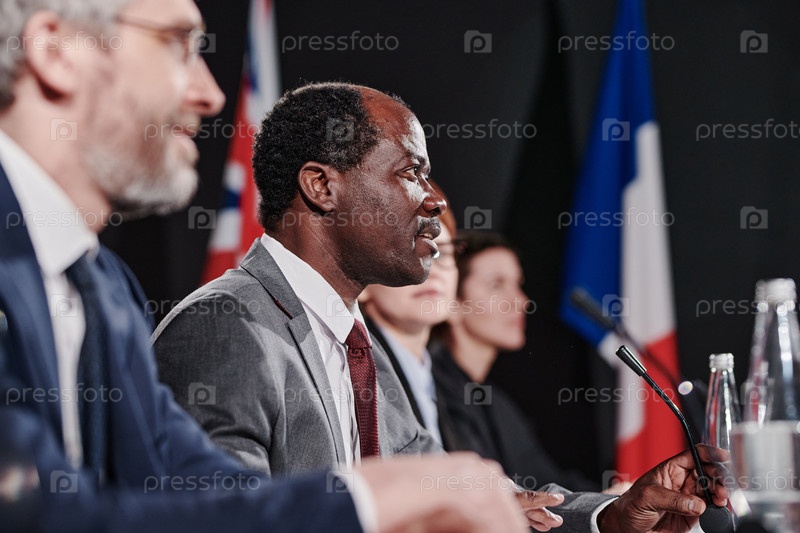 Человек выступает со своей речью на конференции