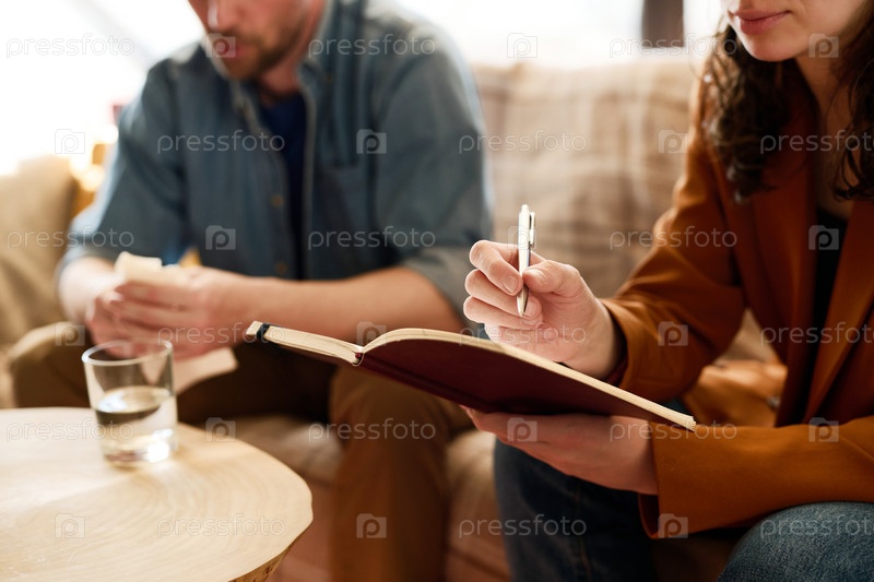 Психолог делает заметки во время разговора