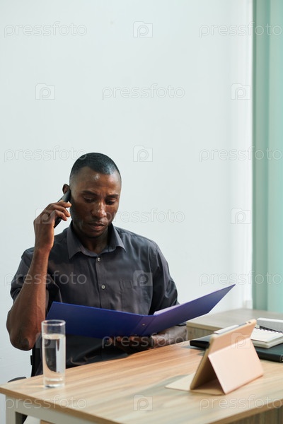 Нахмурившийся бизнесмен разговаривает по телефону