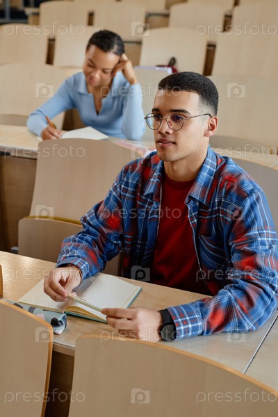 Школьник, сидящий за столом на лекции