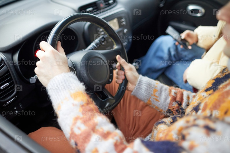 Женщина, управляющая автомобилем зимой
