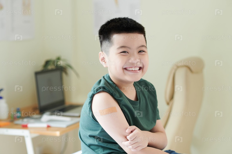Маленький мальчик сидит в кабинете врача