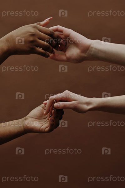 Разнообразная женская пара, держащаяся за руки
