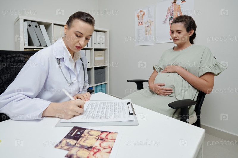 Гинеколог заполняет медицинскую форму