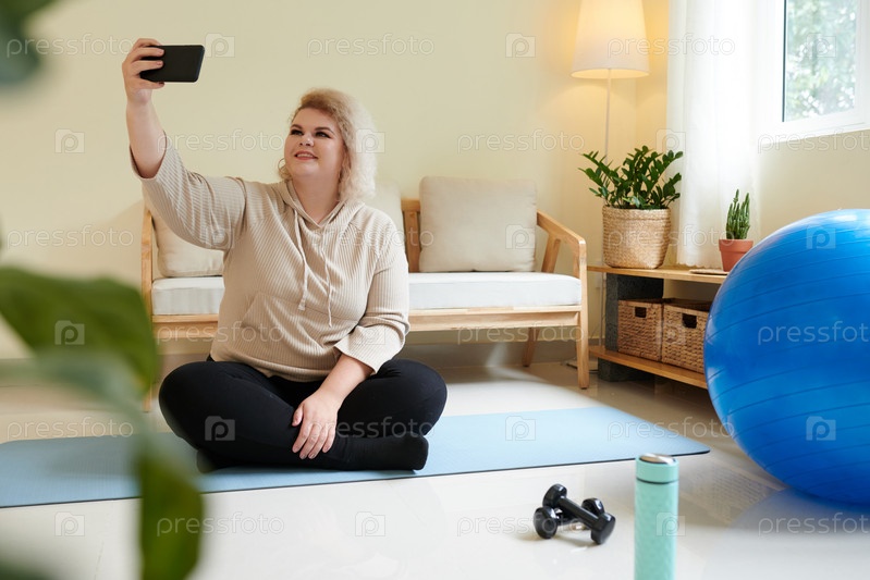 Женщина размера Plus, делающая селфи