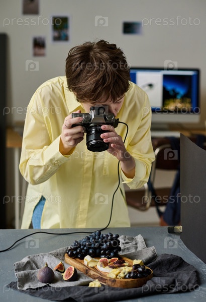Профессиональный фотограф фотографирует фрукты