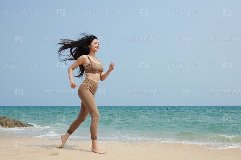Молодая женщина бегает по пляжу