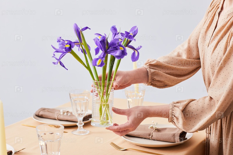 Украшение обеденного стола с ирисами Минимальная женщина