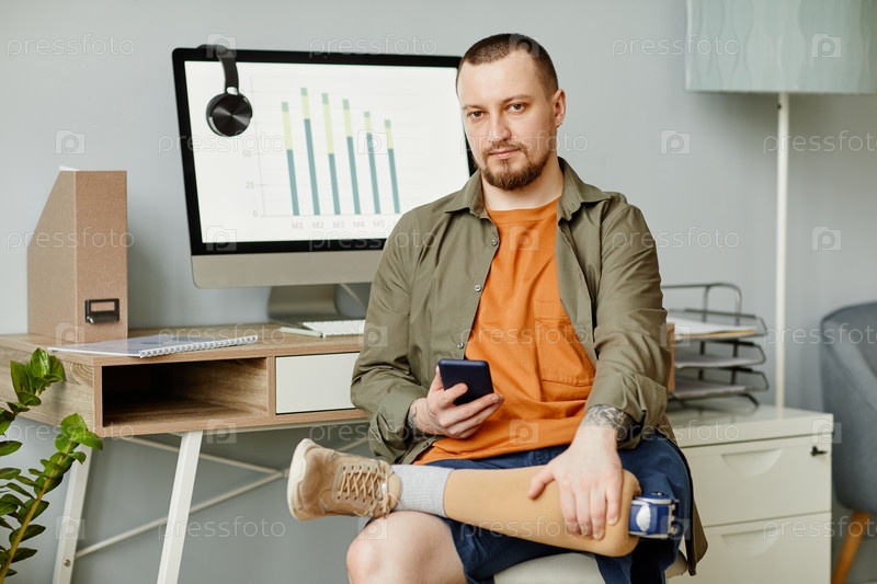 Взрослый мужчина с инвалидностью на рабочем месте