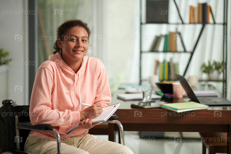 Веселый ученик средней школы с инвалидностью