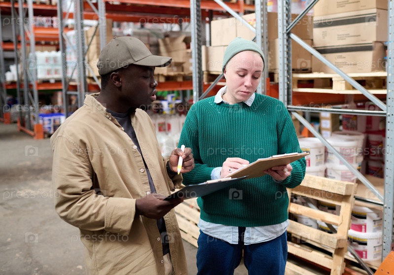 Люди обсуждают доставку на склад