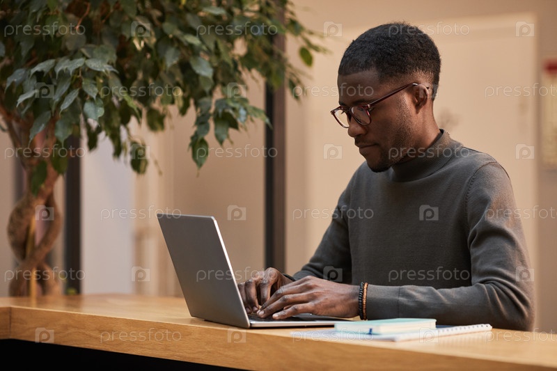 Минимальный снимок чернокожего бизнесмена, использующего ноутбук