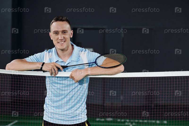 Улыбающийся профессиональный игрок в бадминтон