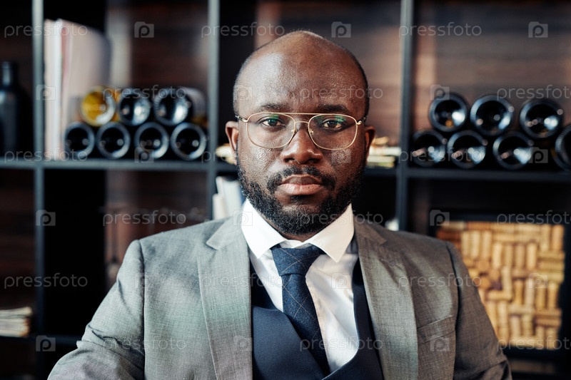 Африканский уверенный бизнесмен, сидящий в ресторане