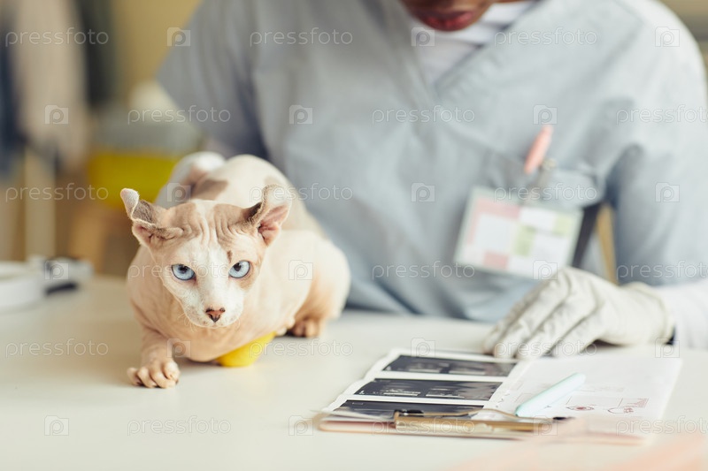 Экзотическая кошка на медицинском осмотре в ветеринарной клинике