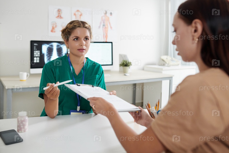 Медсестра просит пациента заполнить форму
