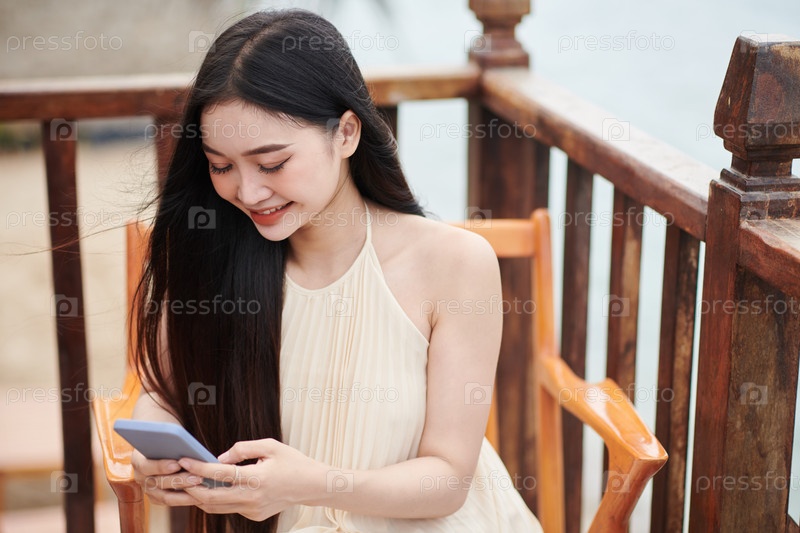 Женщина, отвечающая на текстовые сообщения