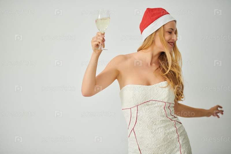 Танцующая женщина в шляпе Санта-Клауса