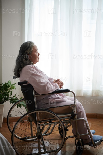 Одинокая старшая женщина в пижаме