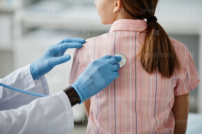 Педиатр, осматривающий ребенка в клинике