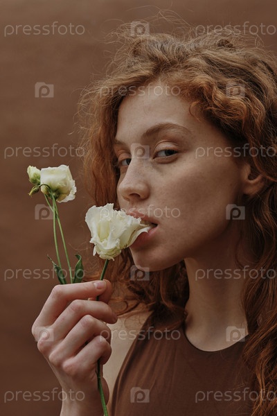 Имбирная чувственная девушка с цветом