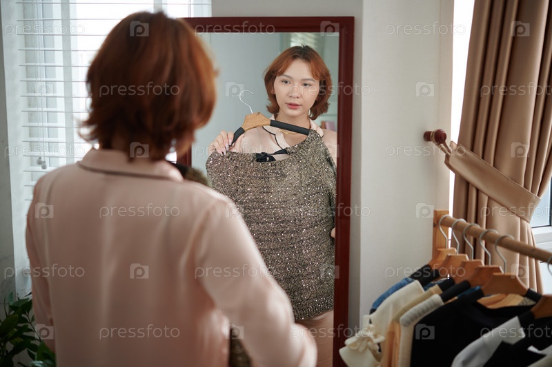 Женщина, пробующая свитер