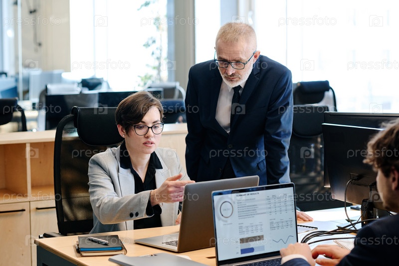 Офисный работник консультируется с менеджером в офисе