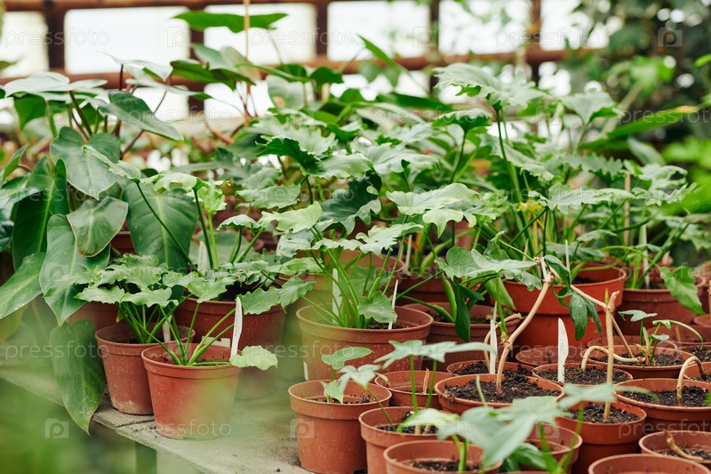 Различные растения, растущие в горшках